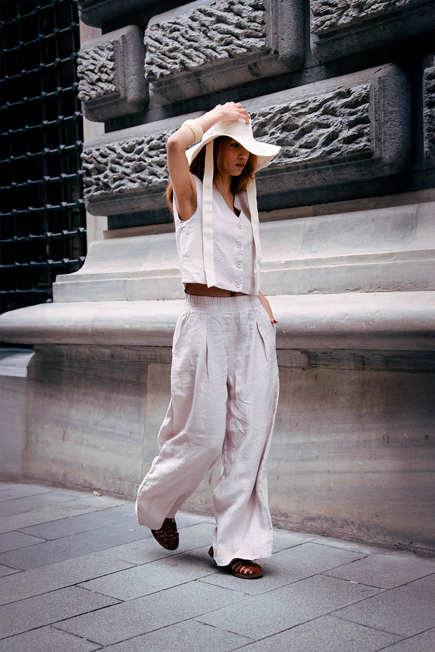 Zarafet ve konforu şık bir dengeye taşıyan bu keten yelek pantolon takım, sıcak günlerin en şık çözümü olmaya geliyor. %100 ham keten kumaşı doğal yapısıyla nefes alabilir, hafif ve serinletici bir konfor sunar. Astarlı formlu yelek şık bir duruş garantilerken, cepli ve rahat kesim pantolon gün boyu hareket özgürlüğü sağlar. Bu takımın en büyük avantajı, hem birlikte giyildiğinde uyumlu bir tarz hem de ayrı ayrı kombinlendiğinde sonsuz stil seçeneği sunmasıdır. İş hayatından özel davetlere, şehir gezilerinden tatil anlarına kadar her ortamda size eşlik edecek sofistike bir çözüm.