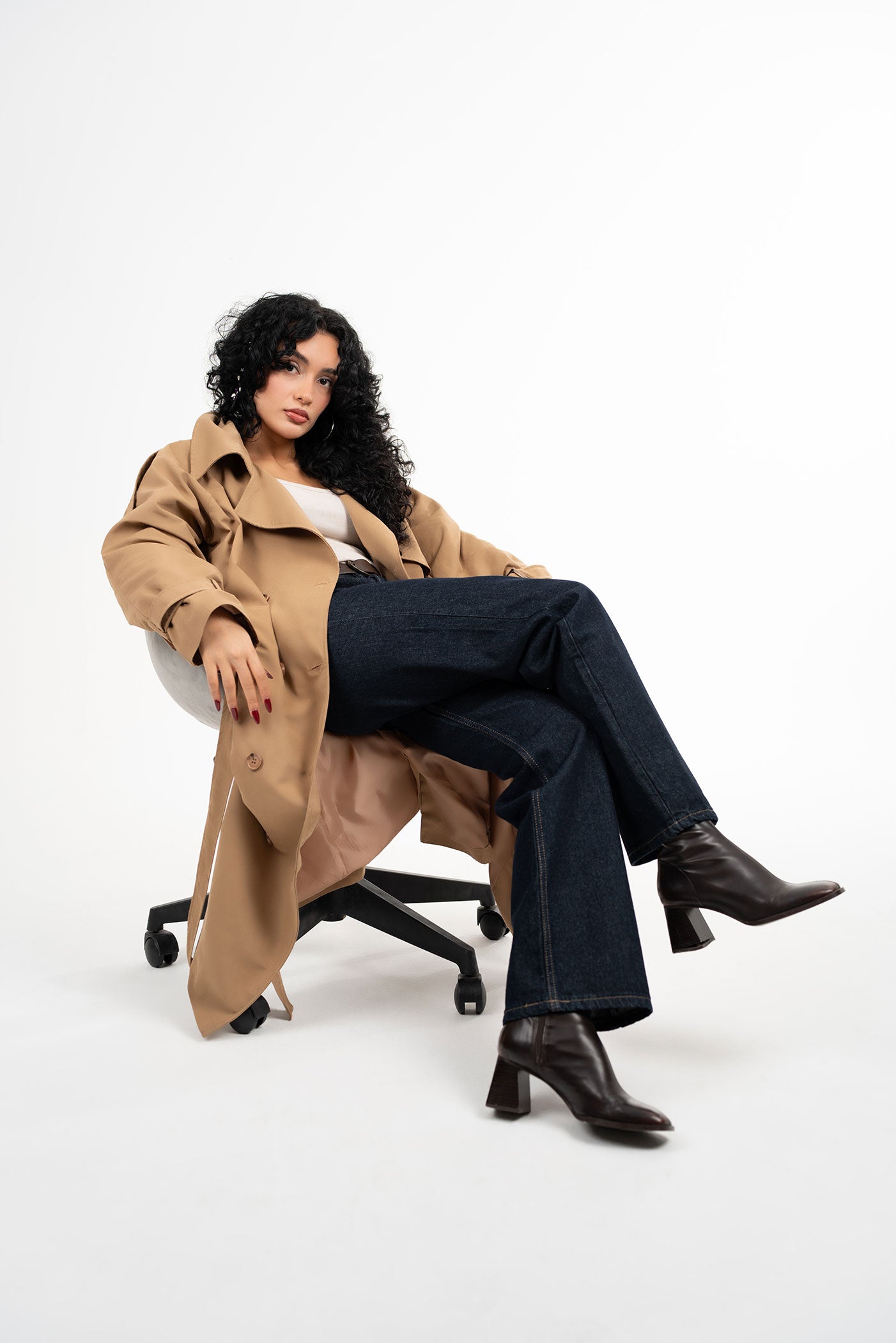 Zamansız Şıklık: Klasik trençkot tasarımının modern oversize yorumu.