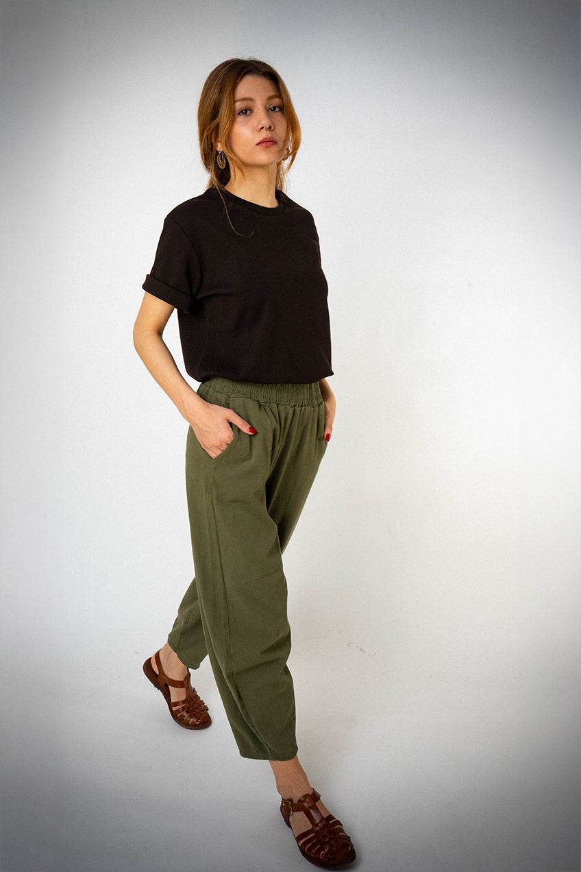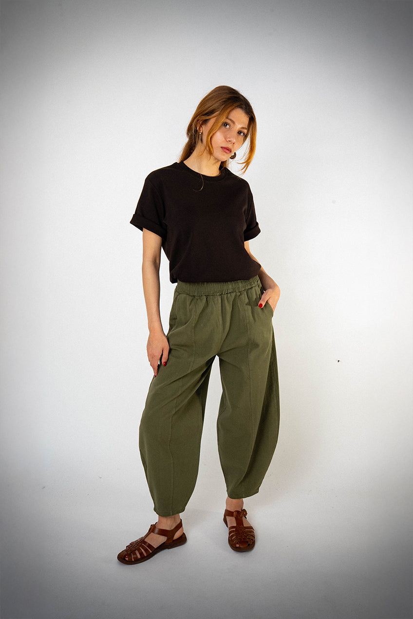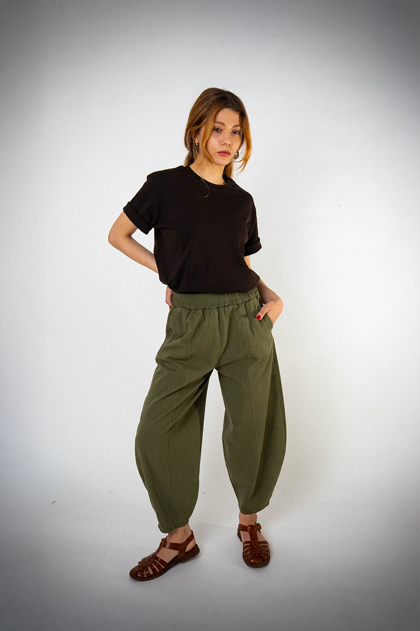 Bol Paça Haki Gabardin Şalvar